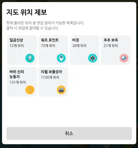 - 현재 위키 지도 편집 참여 기능은 베타 버전이며, 참여 중 버그 및 개선점 발견 시 제보 부탁드립니다.
