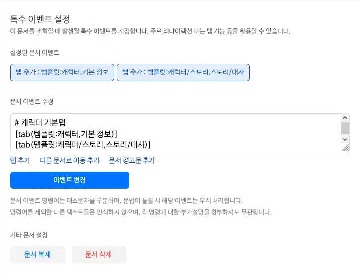 문서 속성 - 특수 이벤트 설정 탭의 기타 문서 설정에서 사용하실 수 있습니다.