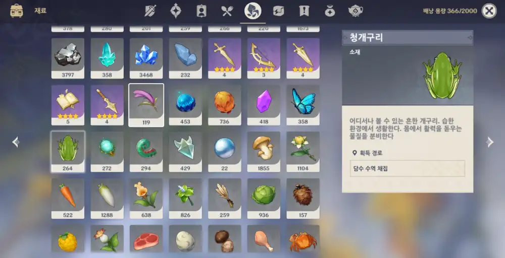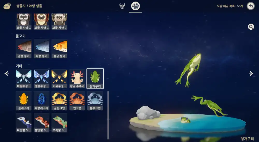 도감-생물지/야생 생물에 등록된 청개구리와 아이템명 청개구리가 겹칩니다.