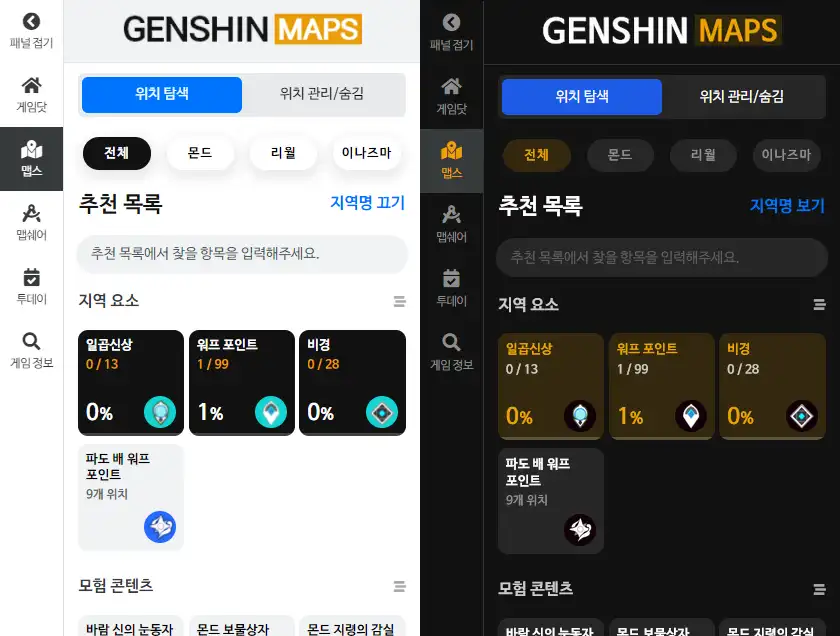 원신 맵스 2.1 업데이트 안내 (추가)