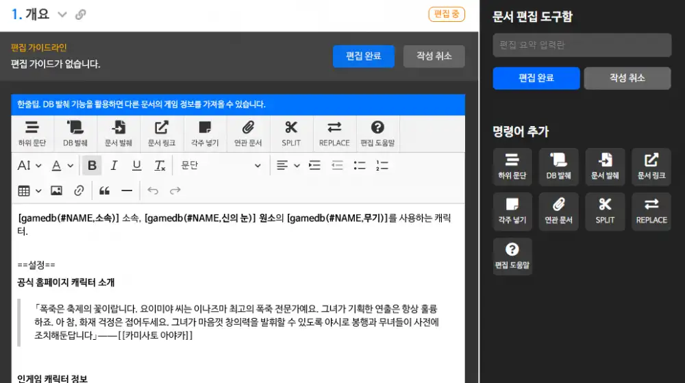 - 문서 편집 시 목차 영역에 편집 도구함이 추가되었습니다. 이제 불필요한 스크롤 없이 즉시 편집 기능을 이용할 수 있습니다..