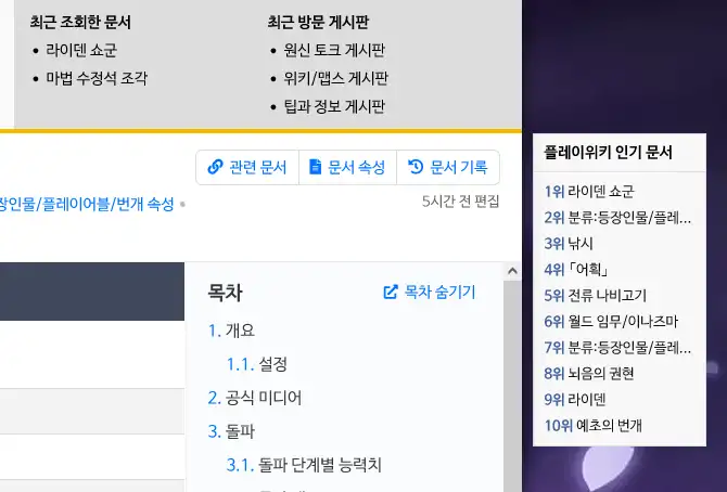 - PC 버전 우측에 플레이위키 인기 문서를 보여주는 위젯을 추가하였습니다.