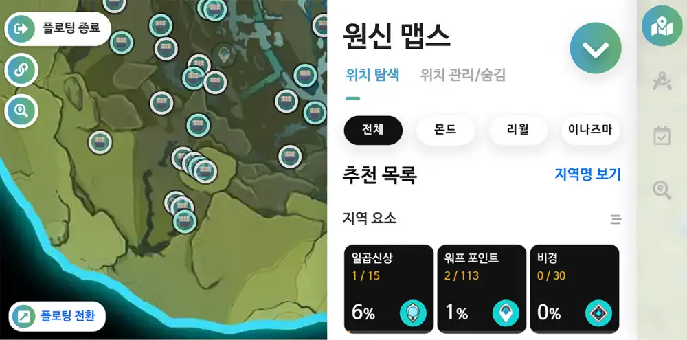 2021년 10월 16일 원신 맵스에 플로팅 모드가 추가되었습니다.