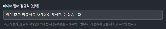 데이터 필터 정규식은 어떻게 사용하나요?