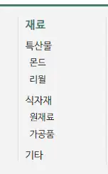 - 인게임에서 원재료나 가공품이라 별도로 분류해놓지는 않았으며,