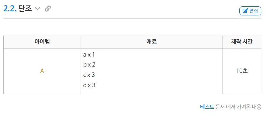 주목할 점은 테스트 문서를 보시면 사용처 문단에서 우측 하단에 "000 문서 에서 가져온 내용" 문장이 반복되는 것입니다.