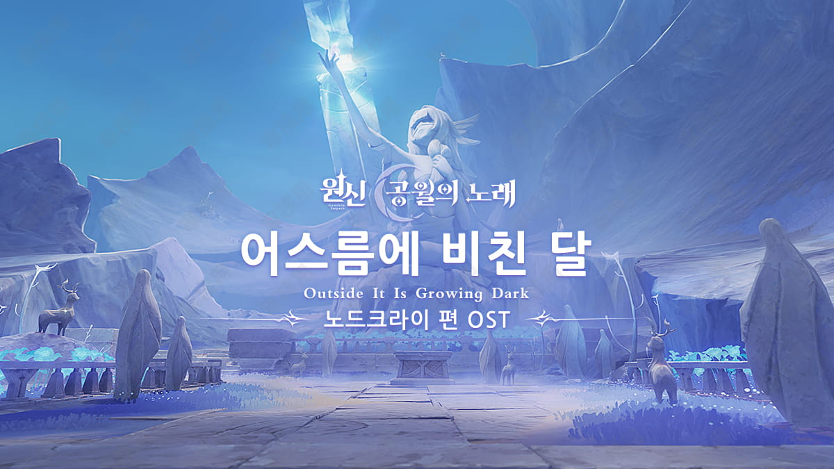 〈원신〉 노드크라이 편 OST 〈어스름에 비친 달 Outside It Is Growing Dark〉 정식 출시! 본 앨범은 〈희미한 달빛이 비치는 고요한 곳 Peace Dropping from The Veils of The Moonlight〉, 〈나샤 마을의 야화 Evenings on a Farm Near Nasha〉, 〈밝은 밤과 어두운 낮의 전조 Svart eller vitt〉 세 장의 디스크로 구성되어 있으며, HOYO-MiX 팀이 노드크라이 지역을 위해 제작한 오리지널 사운드트랙 97곡이 수록되어 있습니다.