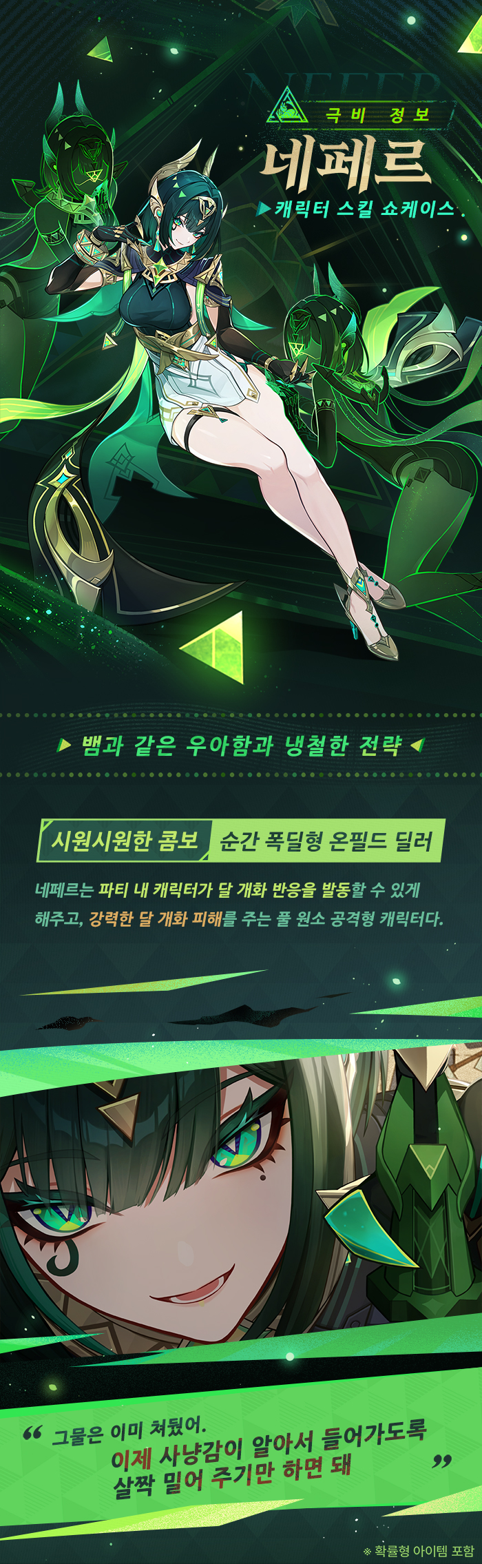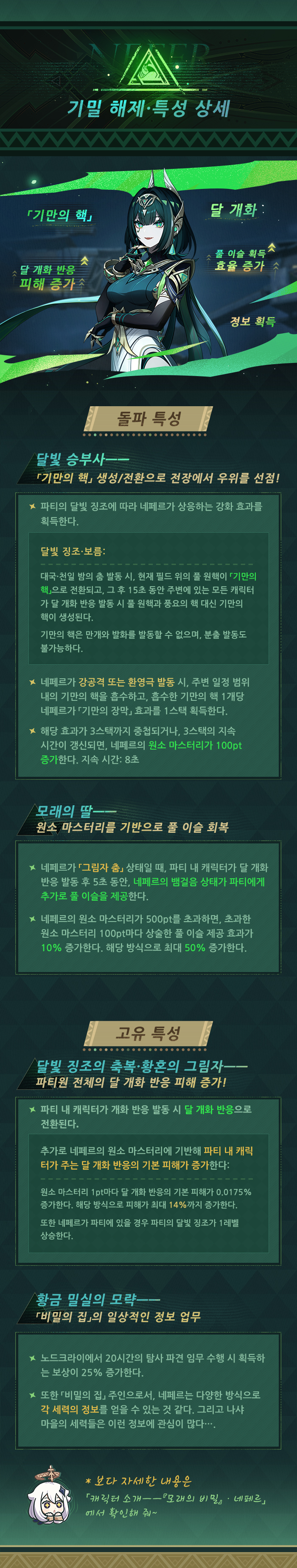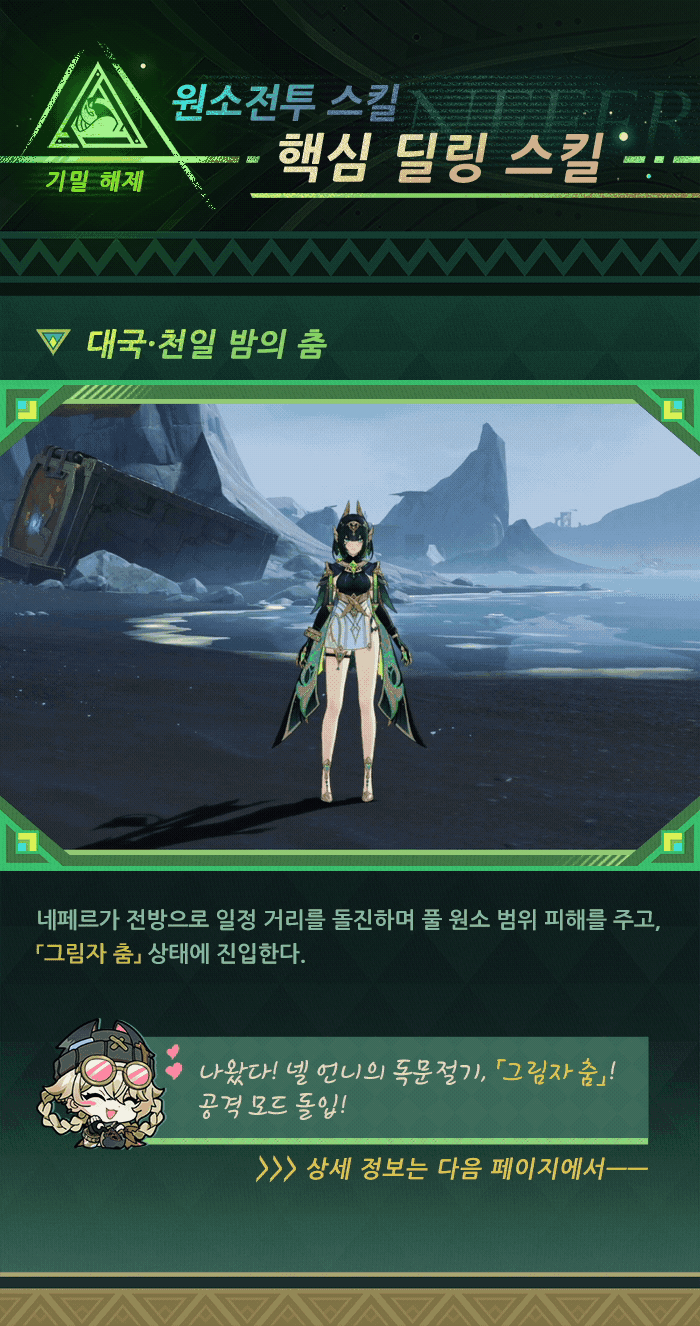여행자 안녕! 이번에는 네페르의 전투와 관련된 기밀 정보를 소개해 줄게. 그럼 함께 살펴보자! 「적색 사막의 유혹」 이벤트 기원 10월 22일 오픈 예정——「모래의 비밀·네페르(풀)」의 기원 획득 확률 대폭 증가!
