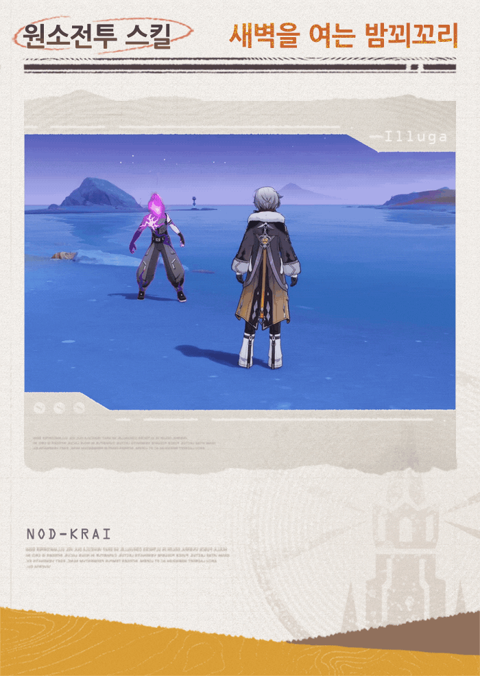 노드크라이 여정에서 플린스와 바르카가 일루가라는 녀석에 대해 언급했던 것 기억하지? 일루가는 등지기의 최연소 분대장으로, 전투에서 「달 결정」 반응에 피해 강화 효과를 제공할 수 있다고 해. 그럼 이제부터 자세히 알아보자구!
