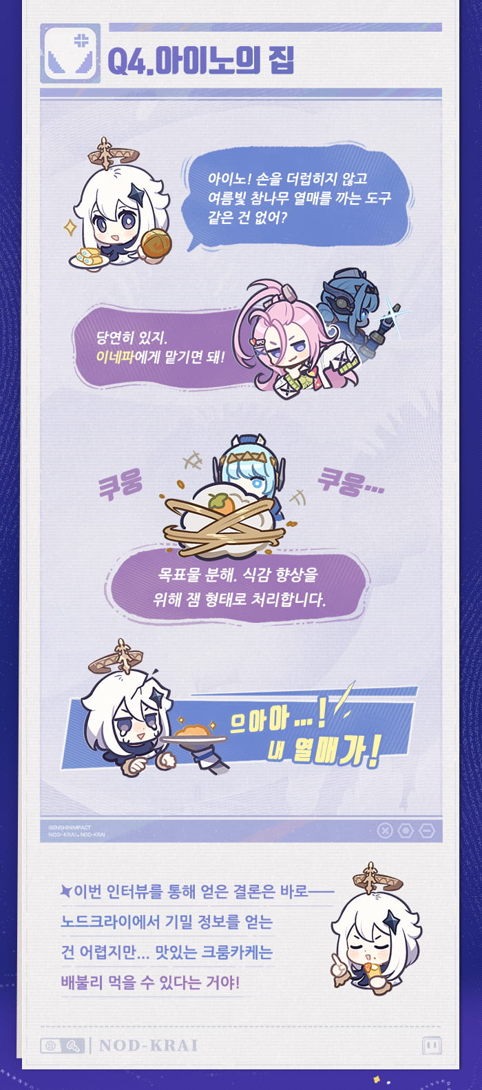 페이몬이 노드크라이 이곳저곳을 돌아다니며 「맛난 음식 관련 정보」를 모으고 있습니다. 잠깐이나마 짬이 났을 때 여행자에게 맛있는 것을 먹여줄 수 있도록 말이죠!