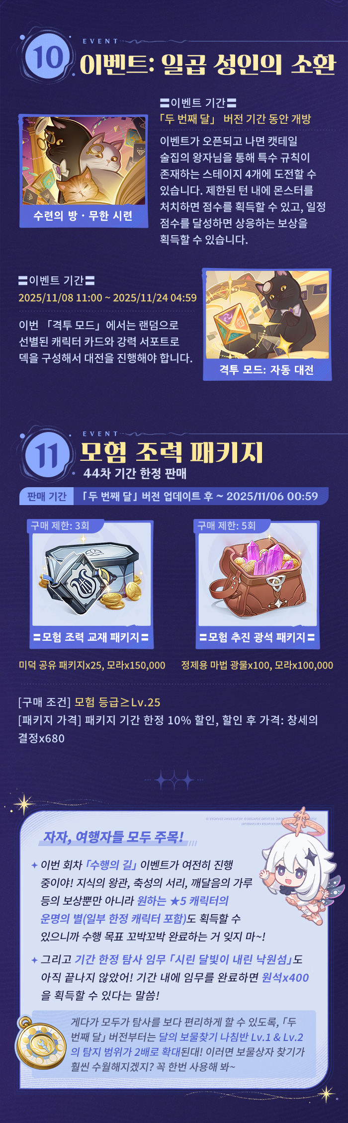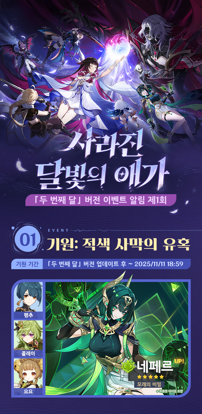 여행자, 안녕~ 「두 번째 달」 버전 「사라진 달빛의 애가」가 곧 출시될 예정이야. 신규 버전의 혜택과 이벤트 소식을 함께 확인해 보자!