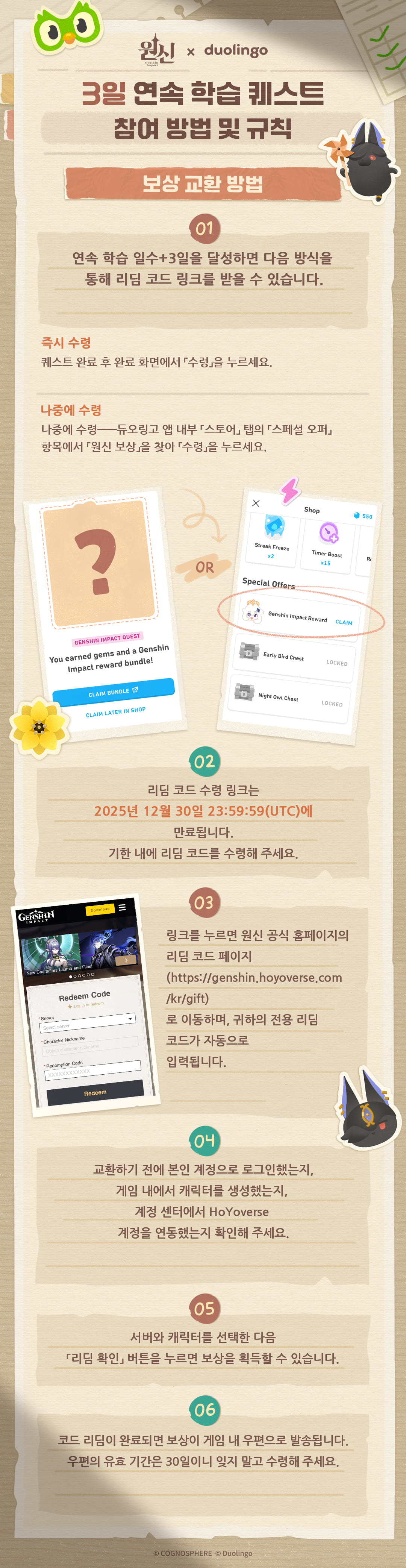 【자세한 내용은 듀오링고 공식 이벤트 페이지를 참고해 주세요: https://www.duolingo.com/help/genshin-impact】