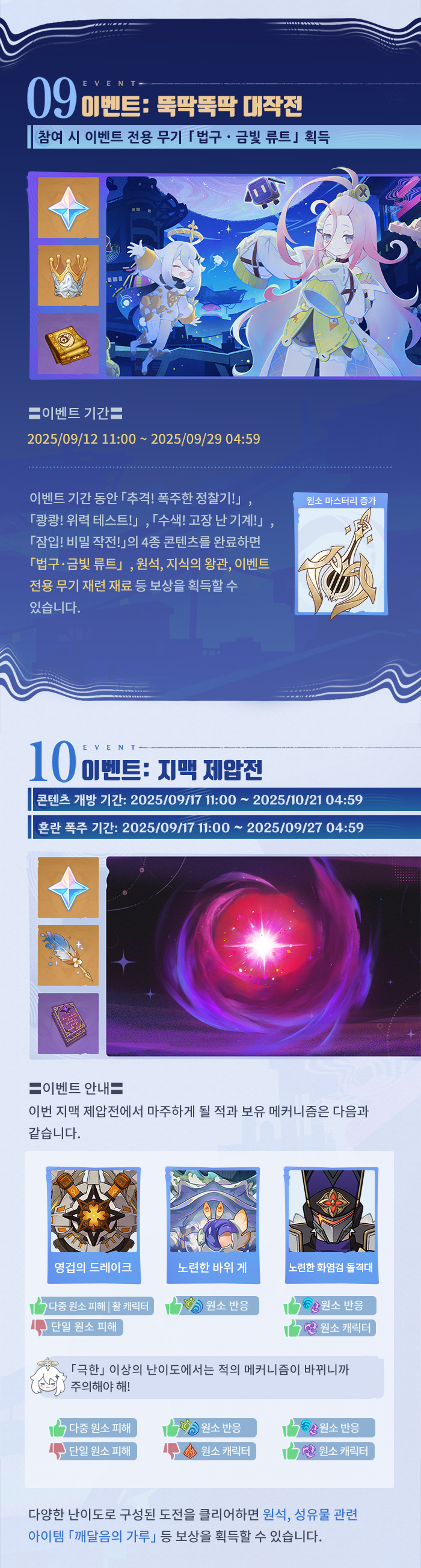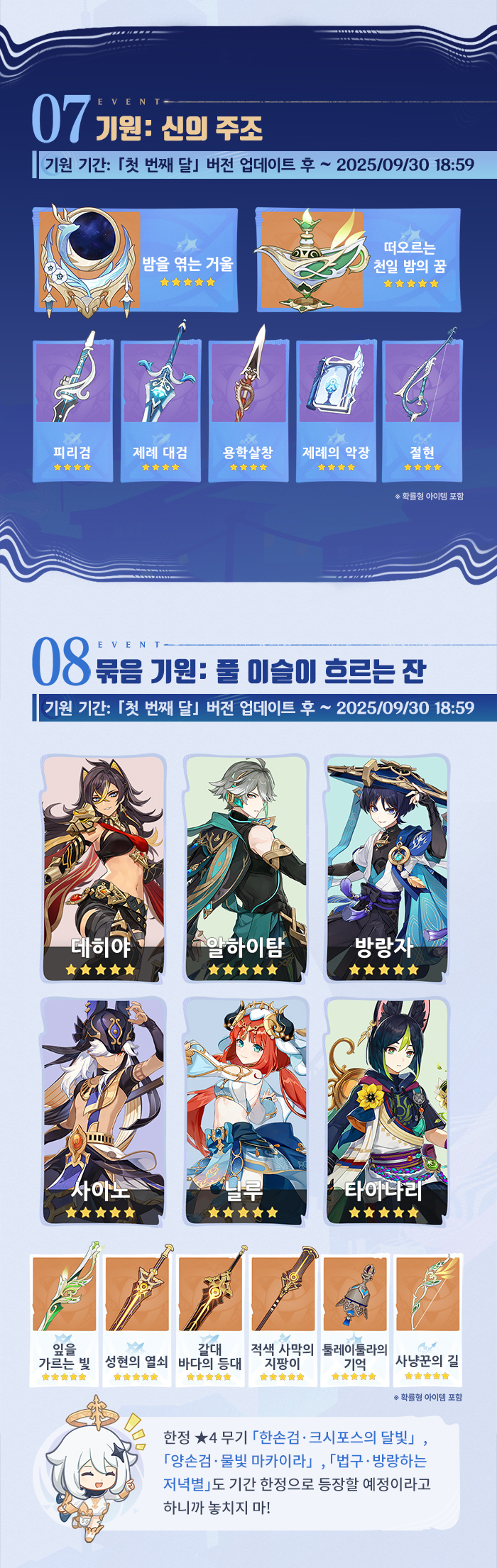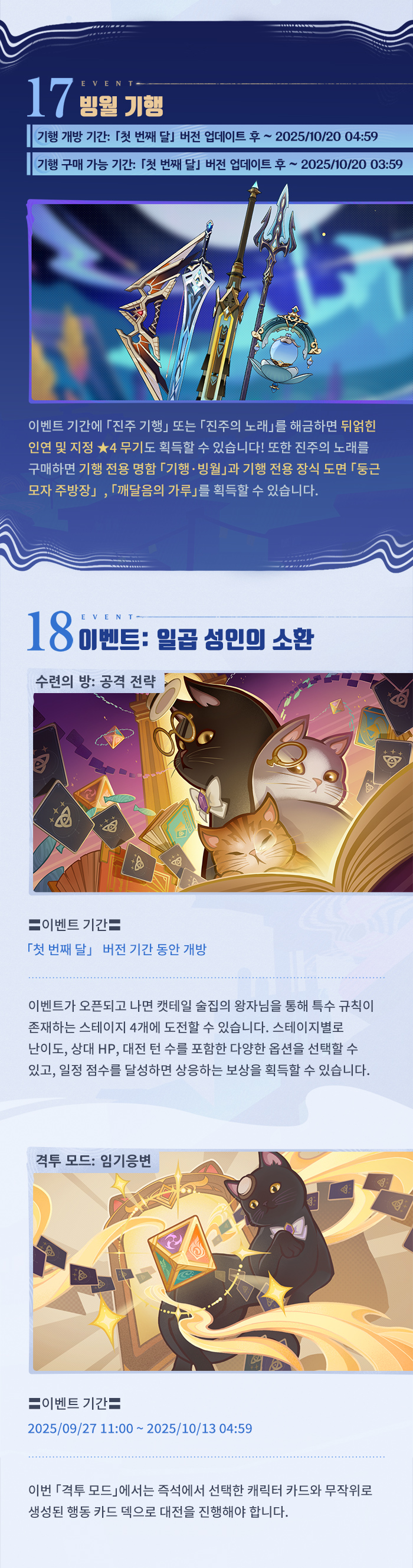| 6156 | [소식] 「눈보라와 푸른숲의 춤」 「첫 번째 달」 버전 이벤트 알림 제2회 | @혹사당하는페이몬21 | 2025.09.25 | 240 | 0/0 |