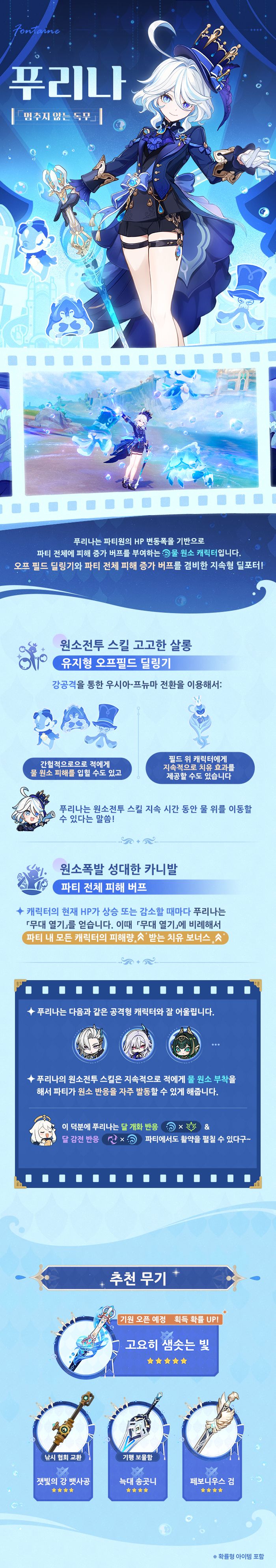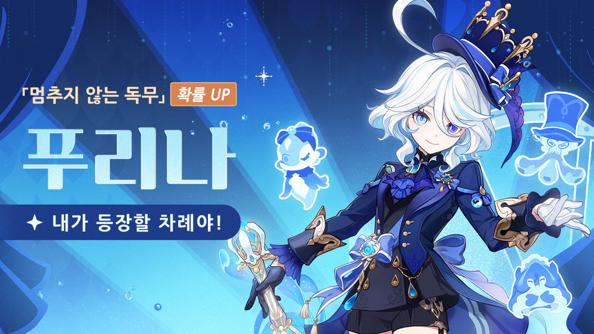 여행자, 안녕! 「물들의 찬송시」 이벤트 기원이 10월 22일에 오픈될 예정이야! 「멈추지 않는 독무·푸리나(물)」의 기원 획득 확률이 대폭 증가할 거래!