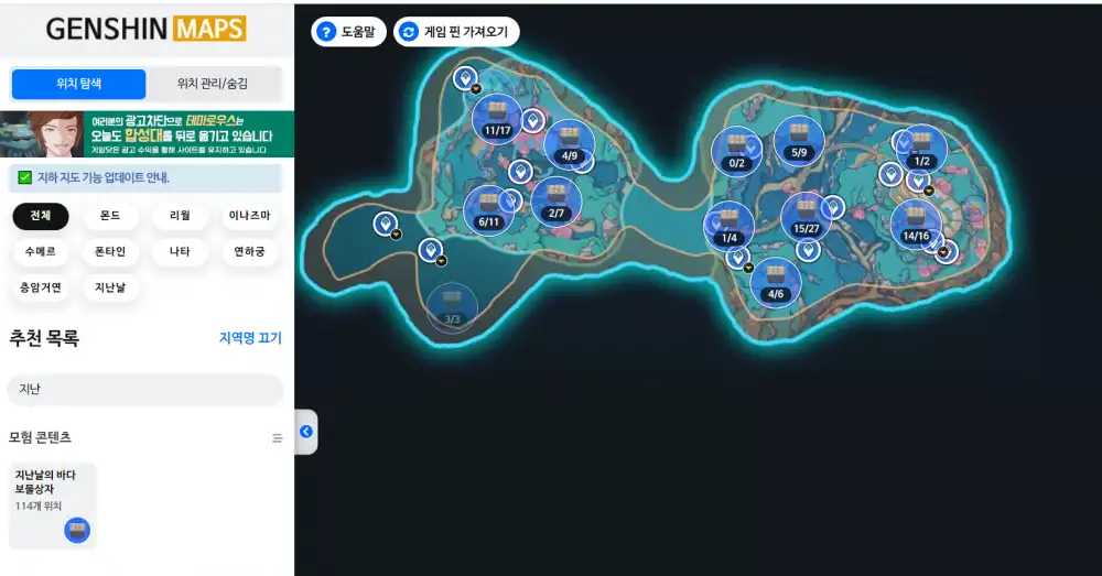사진과같이맵스만접속하면이전에어디지도를봤든재접속시지난날바다로고정이되고보물상자들이위치표시하지않았음에도불구하고표시되네요