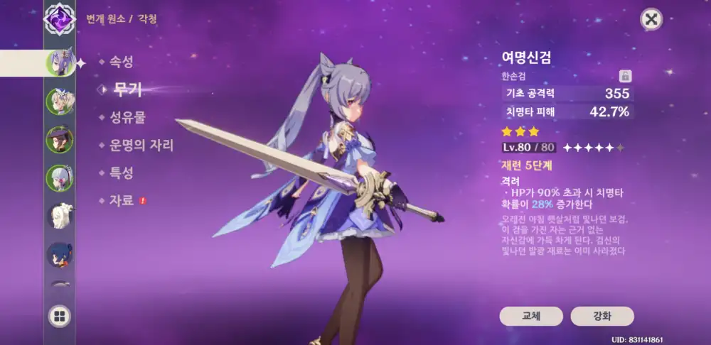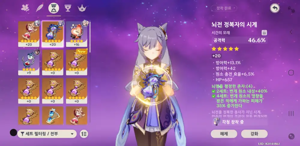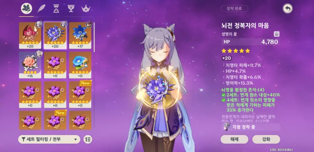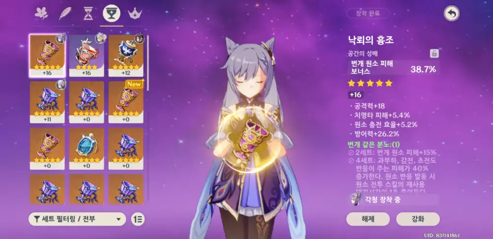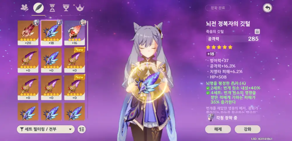 제 각청 딜이 에메하게 나오는것 같아서 성유물이랑 무기셋팅을
