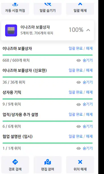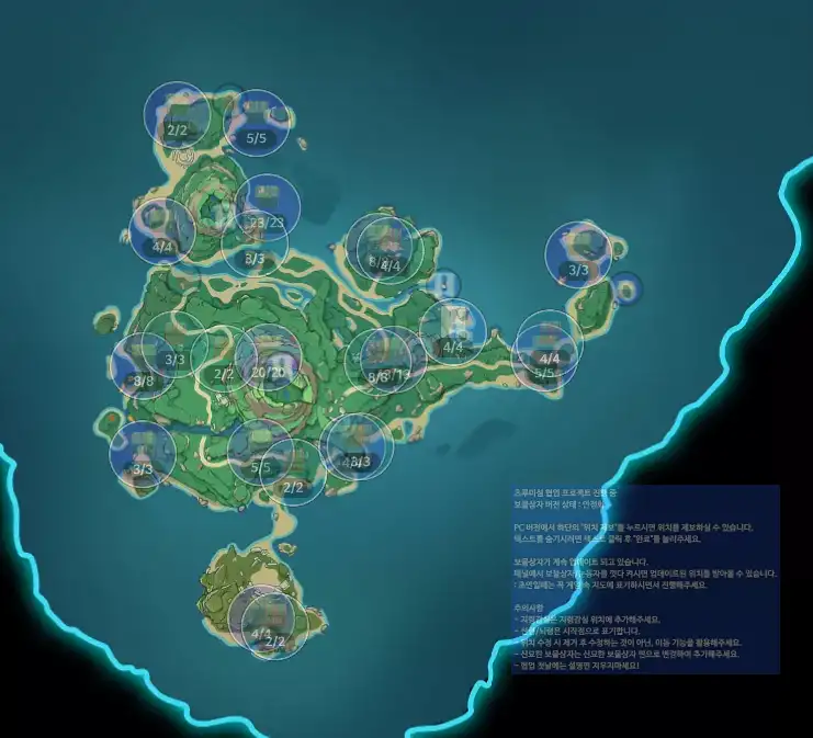 모든 섬에 있는 상자 핀을 다 찍었는데도 보물상자 진행도가 668/669로 나옵니다 확인 부탁드립니다