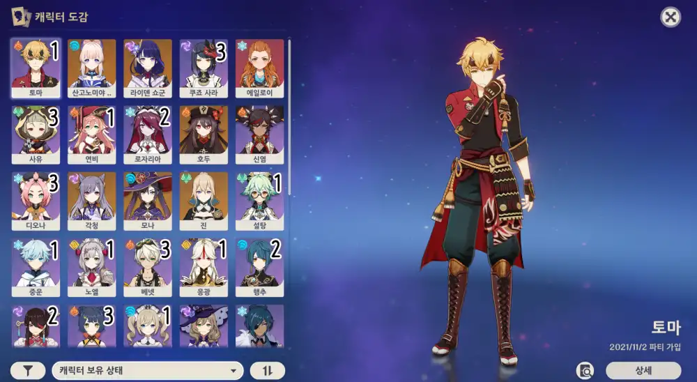 캐릭터 옆에 숫자는 별자리 돌파 횟수예요!