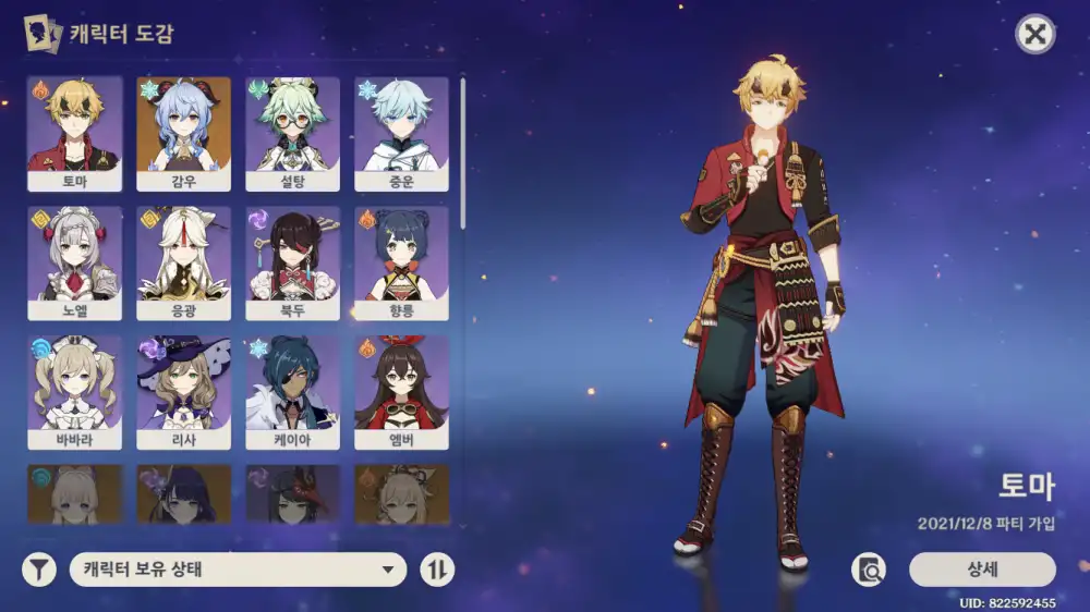 현재 가지고 있는 캐릭다입니다
