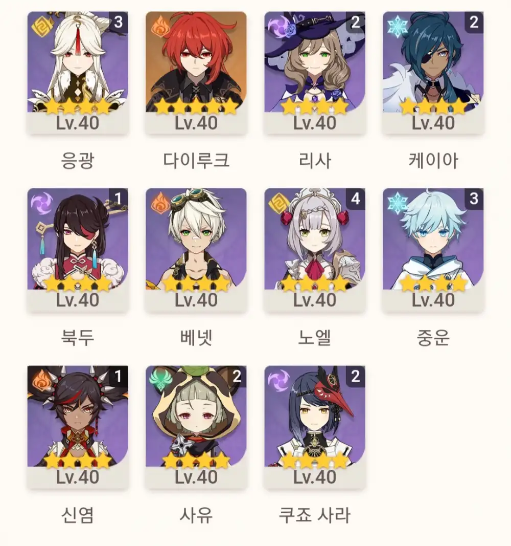 일단 호행설토를 기준으로 1파티를 짰구요
