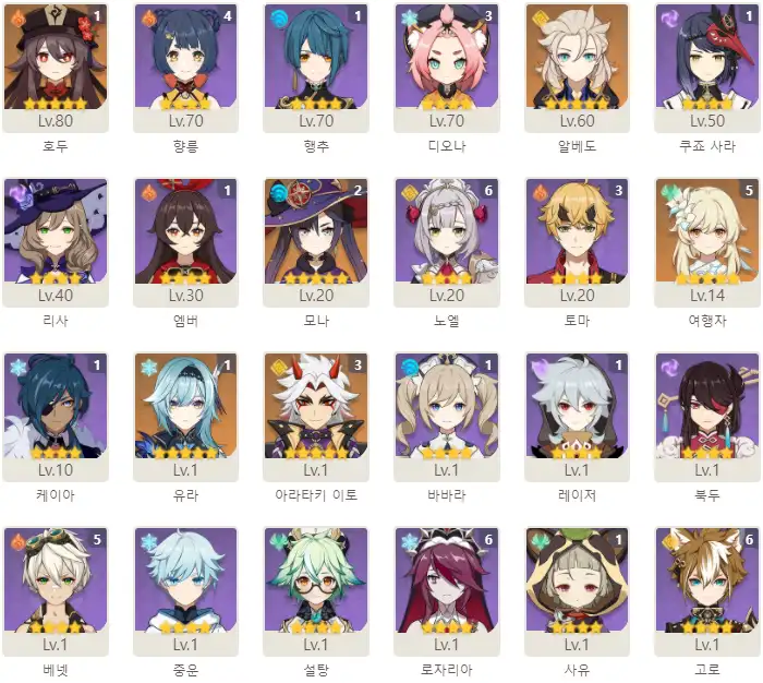 캐릭풀및 저기 조그만한숫자가 돌파정도 입니다..