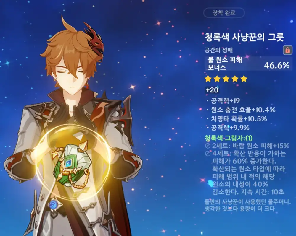 밑의 공간의 성배로 바꿔끼면 공격력 1915, 치확 93.2%, 치피 126.9%입니다.