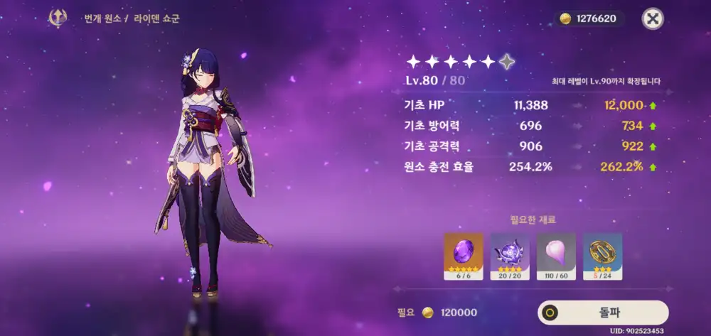 라이덴 80렙 ㅁㅏ지막 돌파 한번 남았고