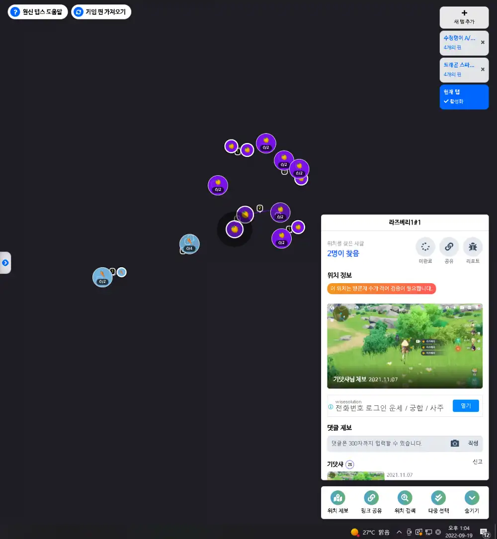 몬드쪽 핀인데 리월 위 검은 배경에 핀이 있네요 맵스도 키자마자 검은색 배경으로 시작하고요