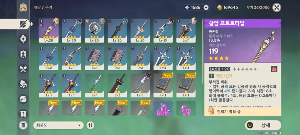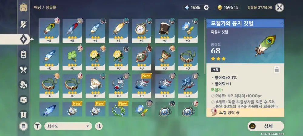 현재 무기랑 성유물은 이정도인데
