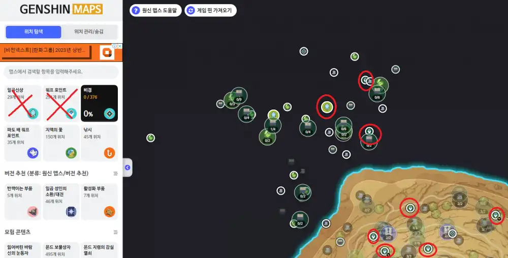 아직 원신맵스에서 3.6버전 신규맵이 등록되지 않아 여러 유저분들께서 등록하실때 어려움이 많이 느끼십니다. 저또한 그렇구요. 그렇다보니 다른핀을 가져와서 대략적 위치를 찍을수밖에없습니다.