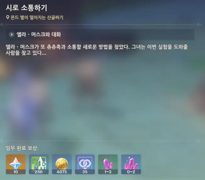 엘라 머스크에게 가기 전에 모여있는 세 츄츄족에게 가면 대화창이 뜸