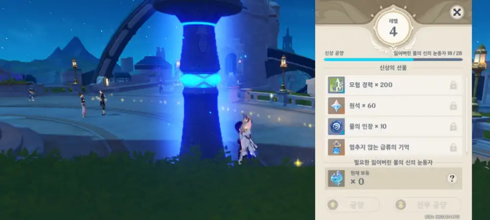 폰타인 눈동자 85개를 다 먹고 신상에 공양을 하면 신상 4레벨에서 10개 부족한 18개까지 채워지는게 맞는건가요?