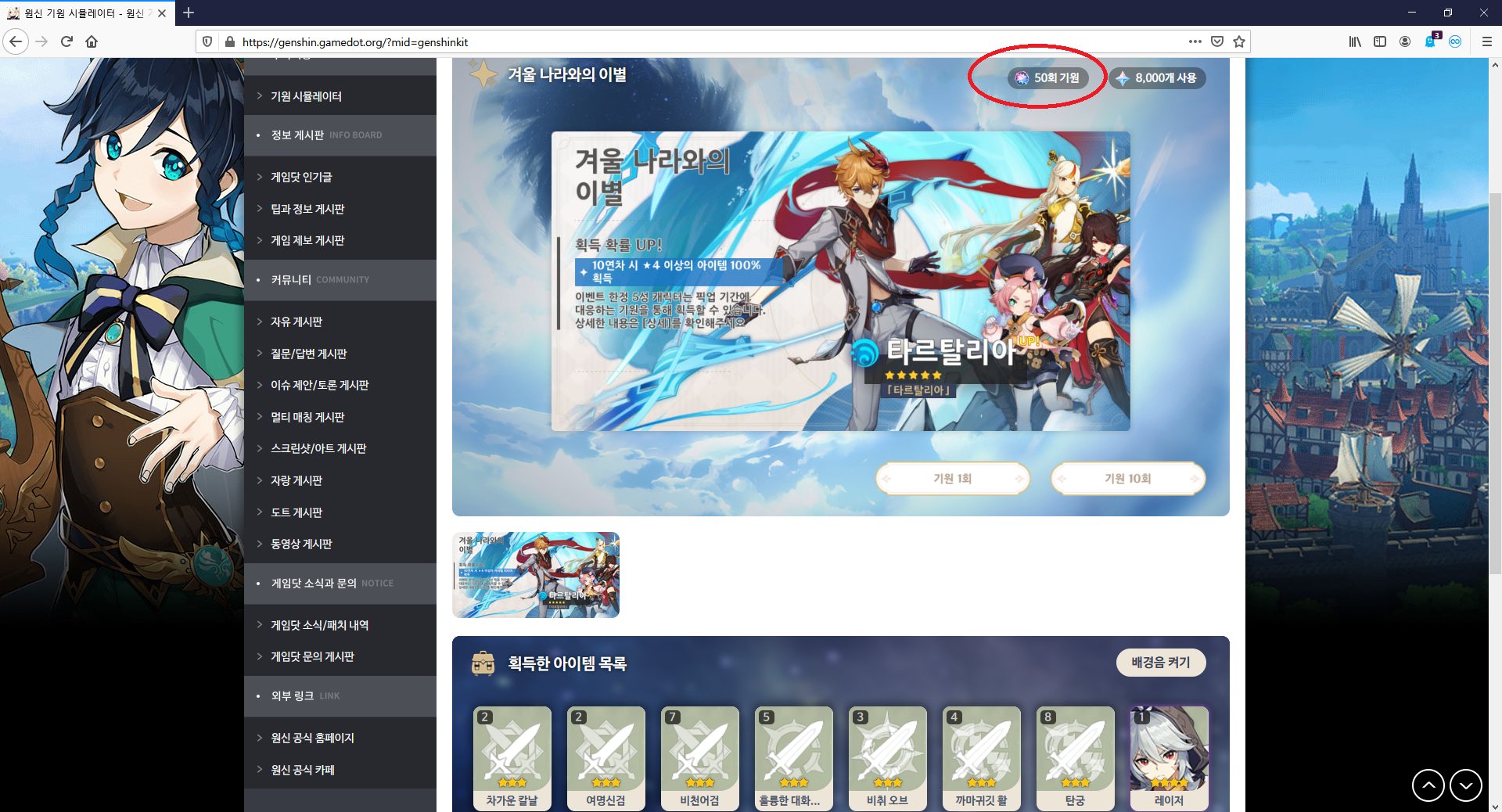 가챠 시뮬 50연차 현타오네.