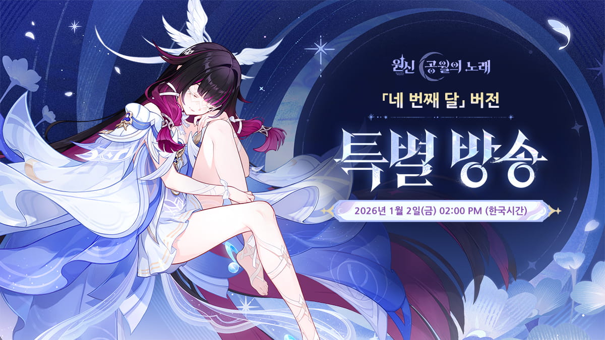 〈원신〉 신규 버전 특별 방송이 2026년 1월 2일 14:00(한국 시간)에 공식 YouTube 채널에서 진행될 예정이야!