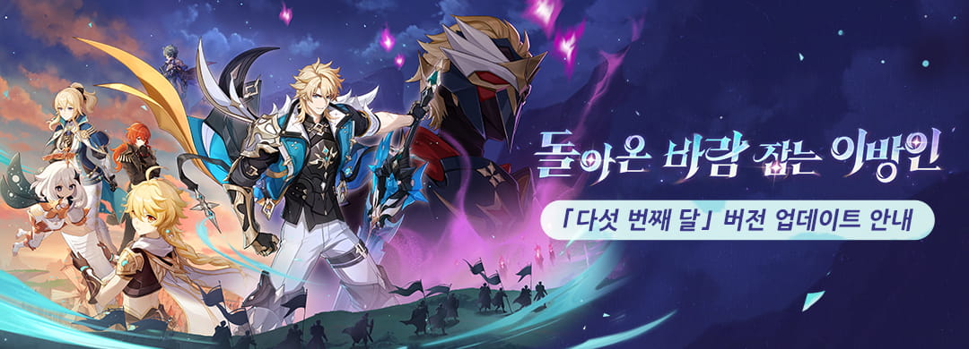 다음은 「다섯 번째 달」 버전——「『공월의 노래·변주』 돌아온 바람 잡는 이방인」의 업데이트 및 보상 내용입니다.