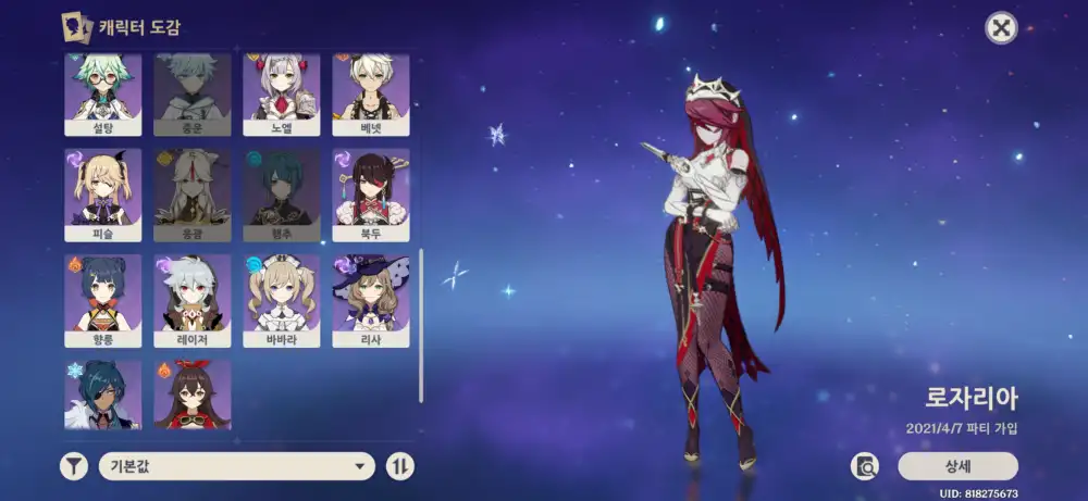 로자리아 2돌 탈탈1돌 베넷3돌 피슬2돌 바바라2돌 외 전부 0돌입니다 5성무기 얷고 절현도 없습니다