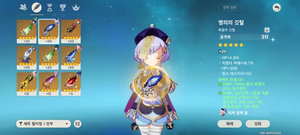 현재 매의검+창백화염 4셋 끼우고 있는데 괜찮을까요? 아님 싹다 얼음성유물 4셋으로 갈아끼우는게 더 좋을까요? 사진 첨부합니다
