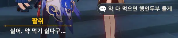 행인두부를 갖고와서 진향에게 말을 걸면 퀘스트가 진행된다.