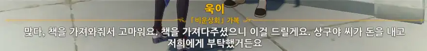 비운상회의 욱이에게 가서 말을 걸면 퀘스트가 완료된다.