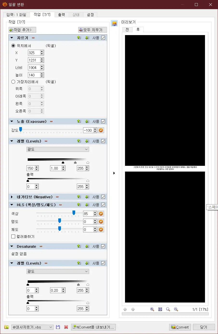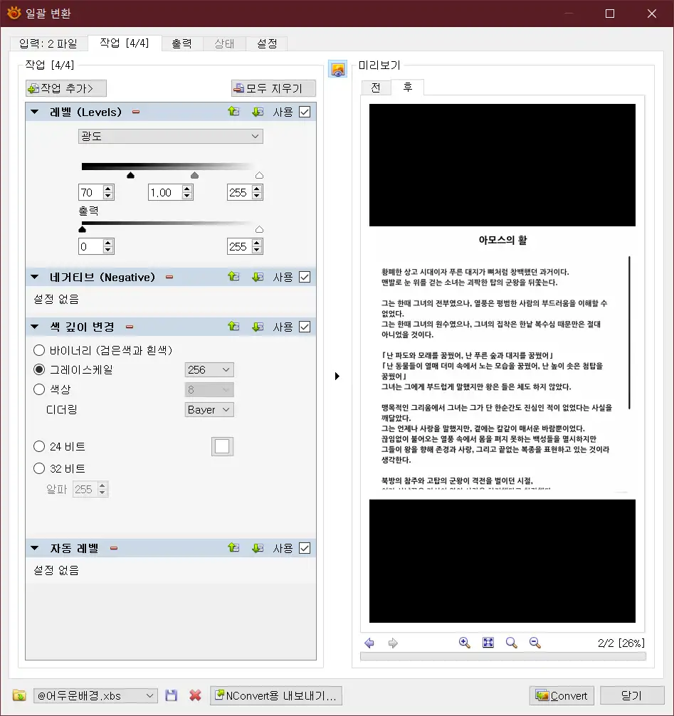 이 프로그램에는 이미지를 여러개 선택해서 일괄 변환할 수 있는 기능이 있는데, 아래처럼 프리셋을 저장해두고 사용할 수 있어서 유용하다.