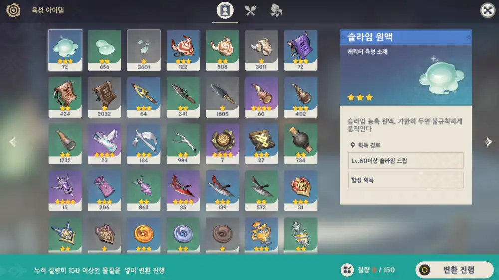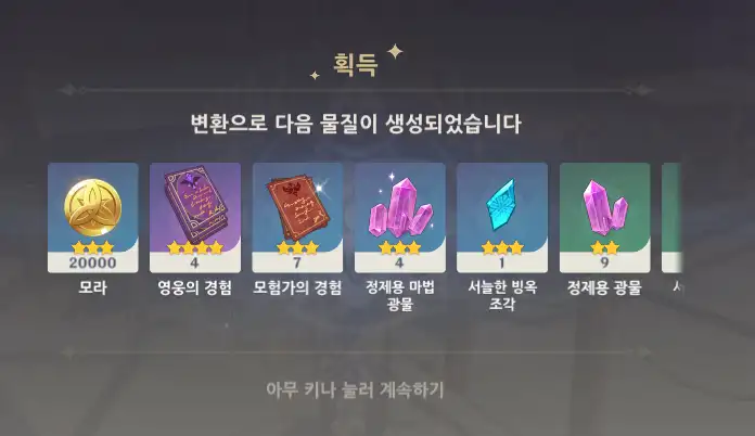 모라 / 경험치책 / 정제용 광물 / 원소 돌파 소재 / 무기 강화 재료 등 주는 것 같음