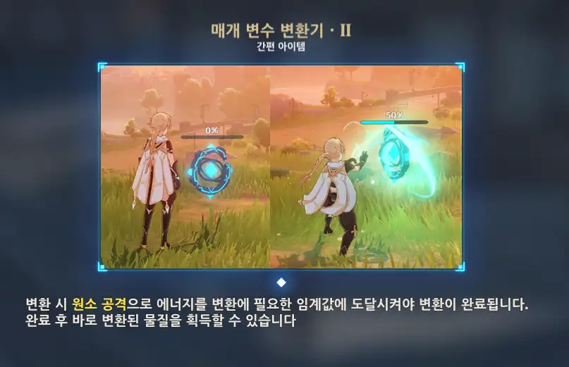 변환 진행하면 아래와 같이 원소 공격을 해줘야 진행이 됨. 법구캐나 활캐가 편할듯.