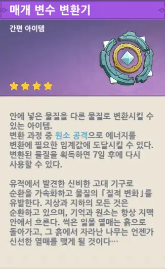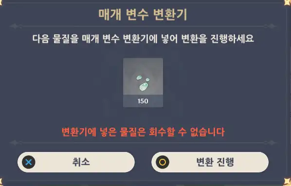 (철광/백철/수정덩이/마법 수정석 조각/성은 광석은 변환 불가함)