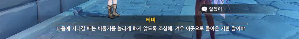 [사이좋게 지낼수 있을거라는 티미의 말에 "알겠어"라고 답했을 경우]