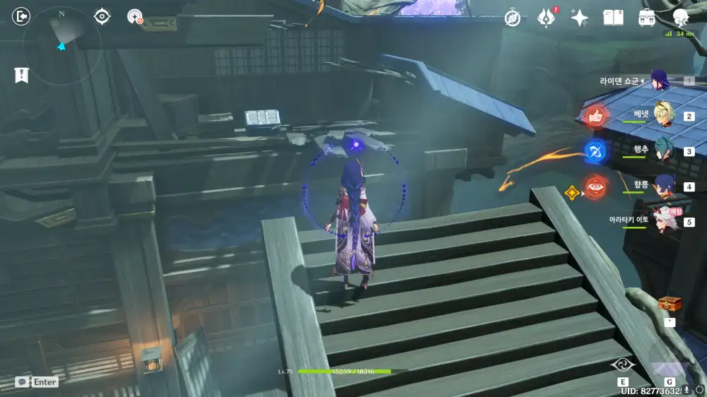 1. 회전 계단을 왼쪽으로 돌리고 올라간 후 사다리 레버 있는 곳의 평범한 보물 상자