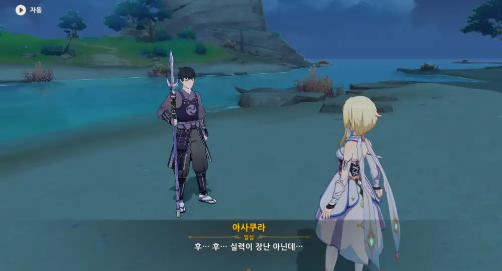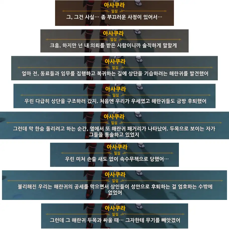 물리친 후, 화면이 전환되며 스크립트가 나온다.