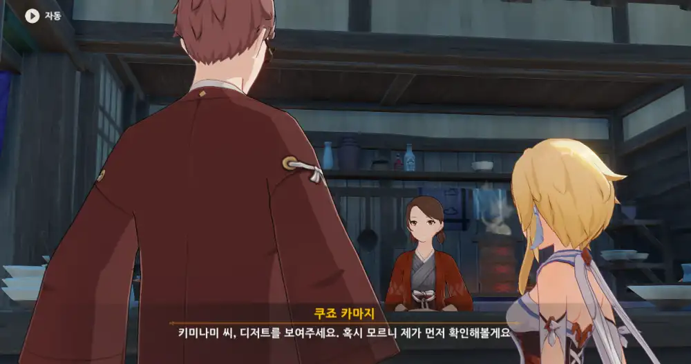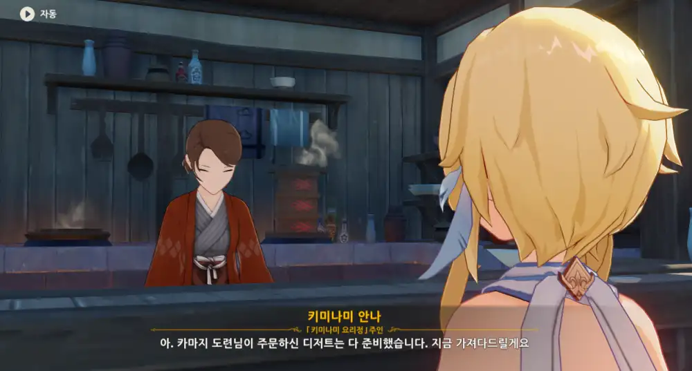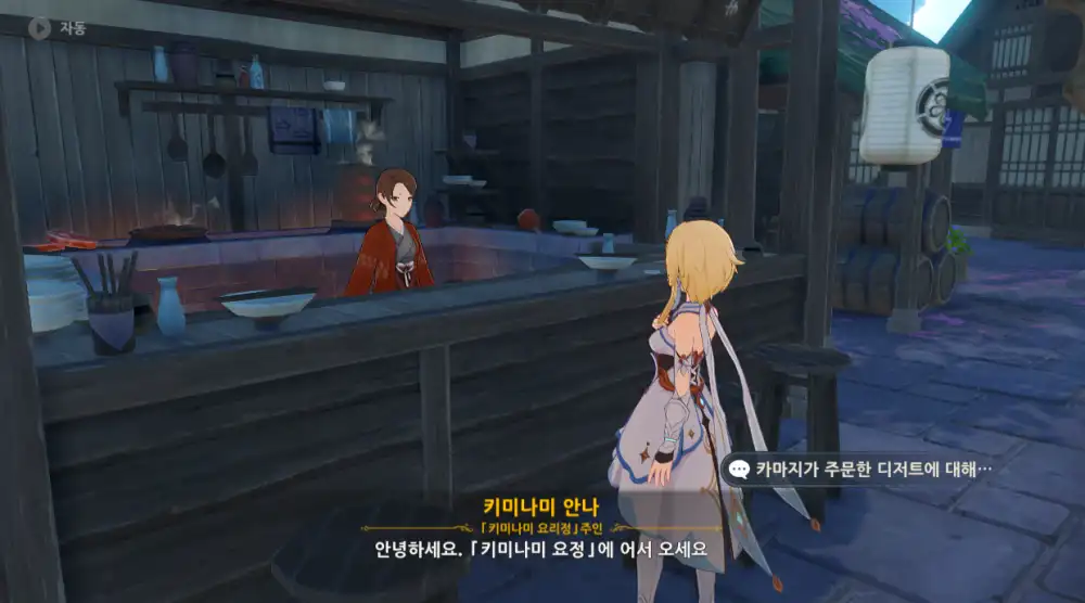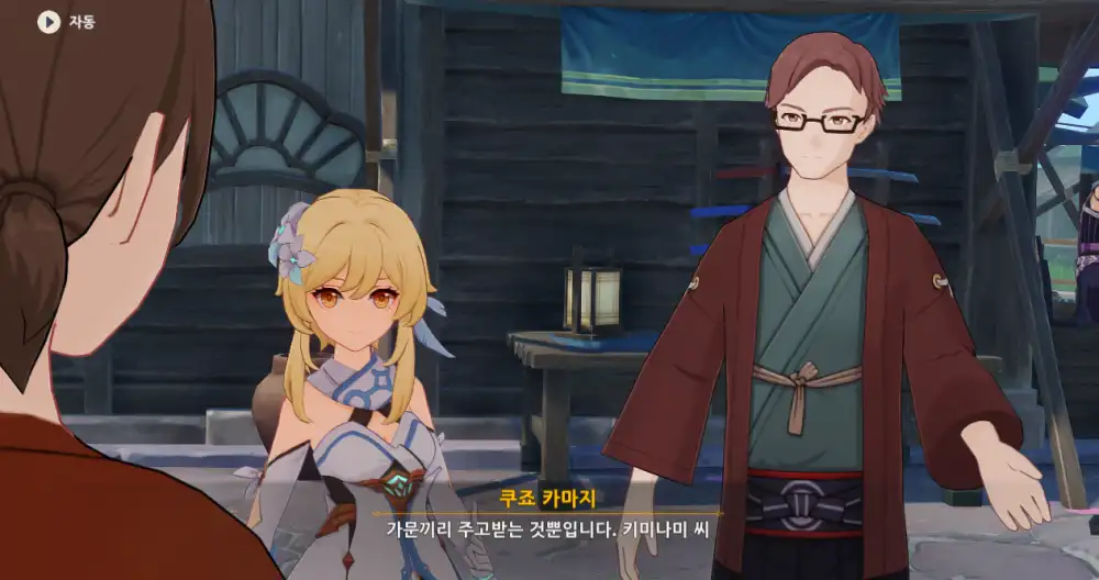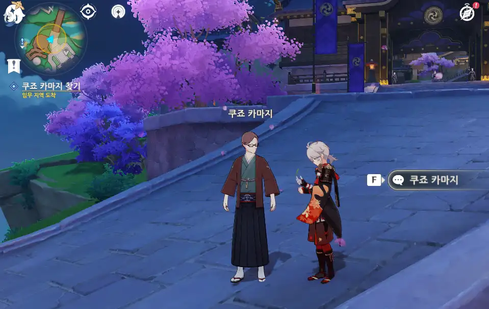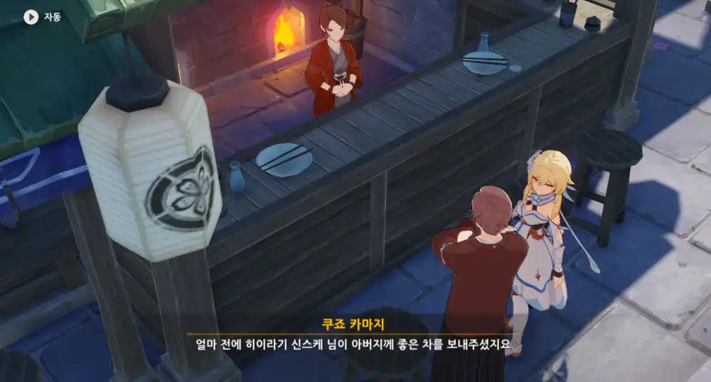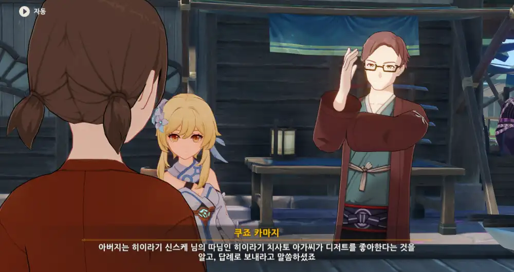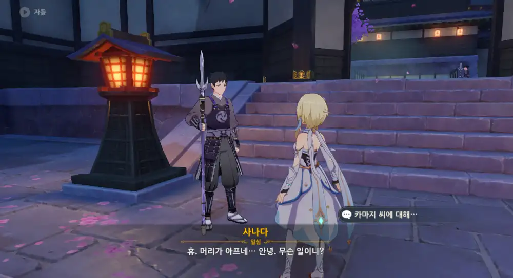 해당 위치에 가까이 다가가면 화면 전환이 되면서 NPC 사나다가 자동으로 말을 건다.