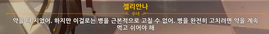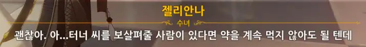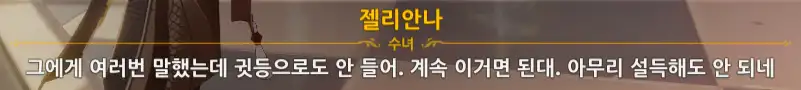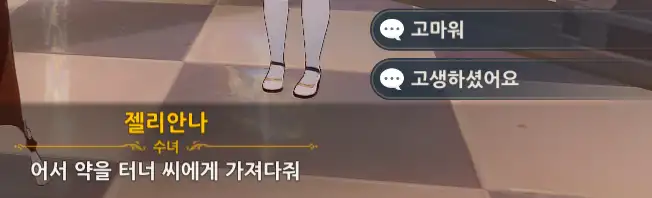 가기 전에 젤리안나에게 말을 걸면 다음과 같은 대화문이 출력된다.