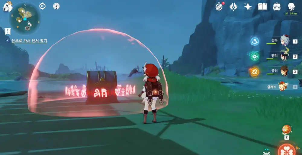 다가가면 페이몬이 말을 걸면서 다른 곳을 조사해 보자고 한다.