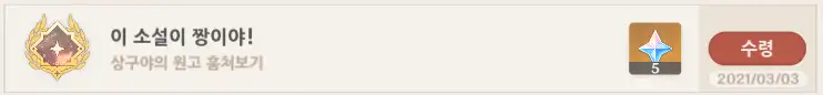 | 489 | 스토리 비경 내 상자들 : 부족 견문 임무 (색이 흐르는 추억) 3막 3 | 강낭땅콩136 | 2025.01.02 | 6096 | 7/0 |